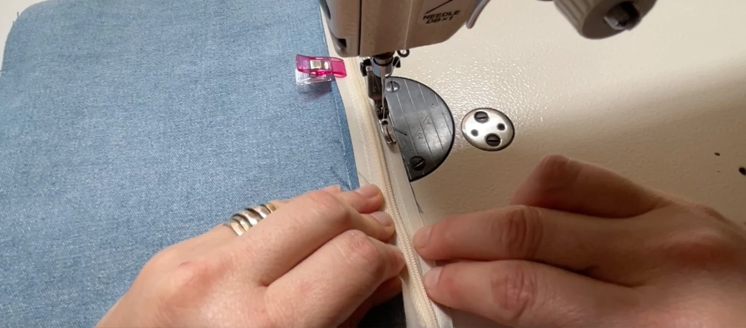 The stitch line will need to be as close to the zipper teeth without stitching into them or over them.